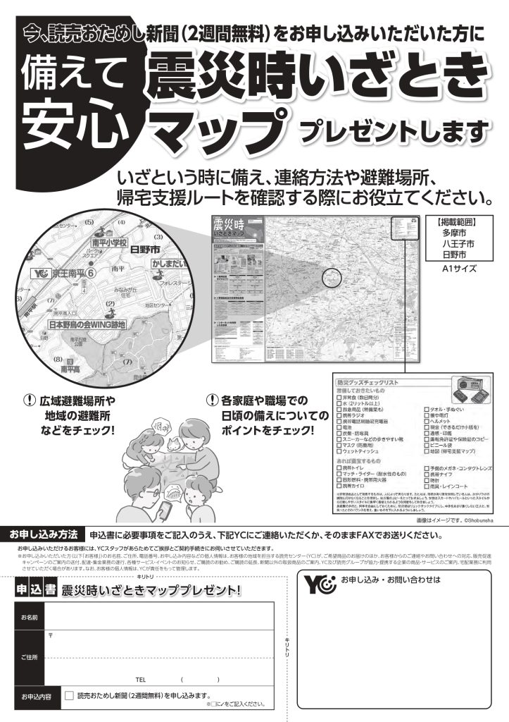 備えて安心「震災時いざときマップ」をプレゼント